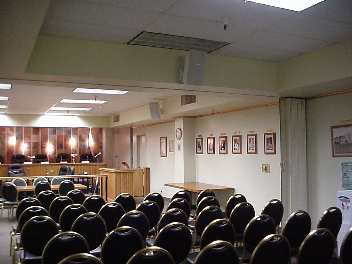 Room that has public hearings. Shure SCM810's automatic