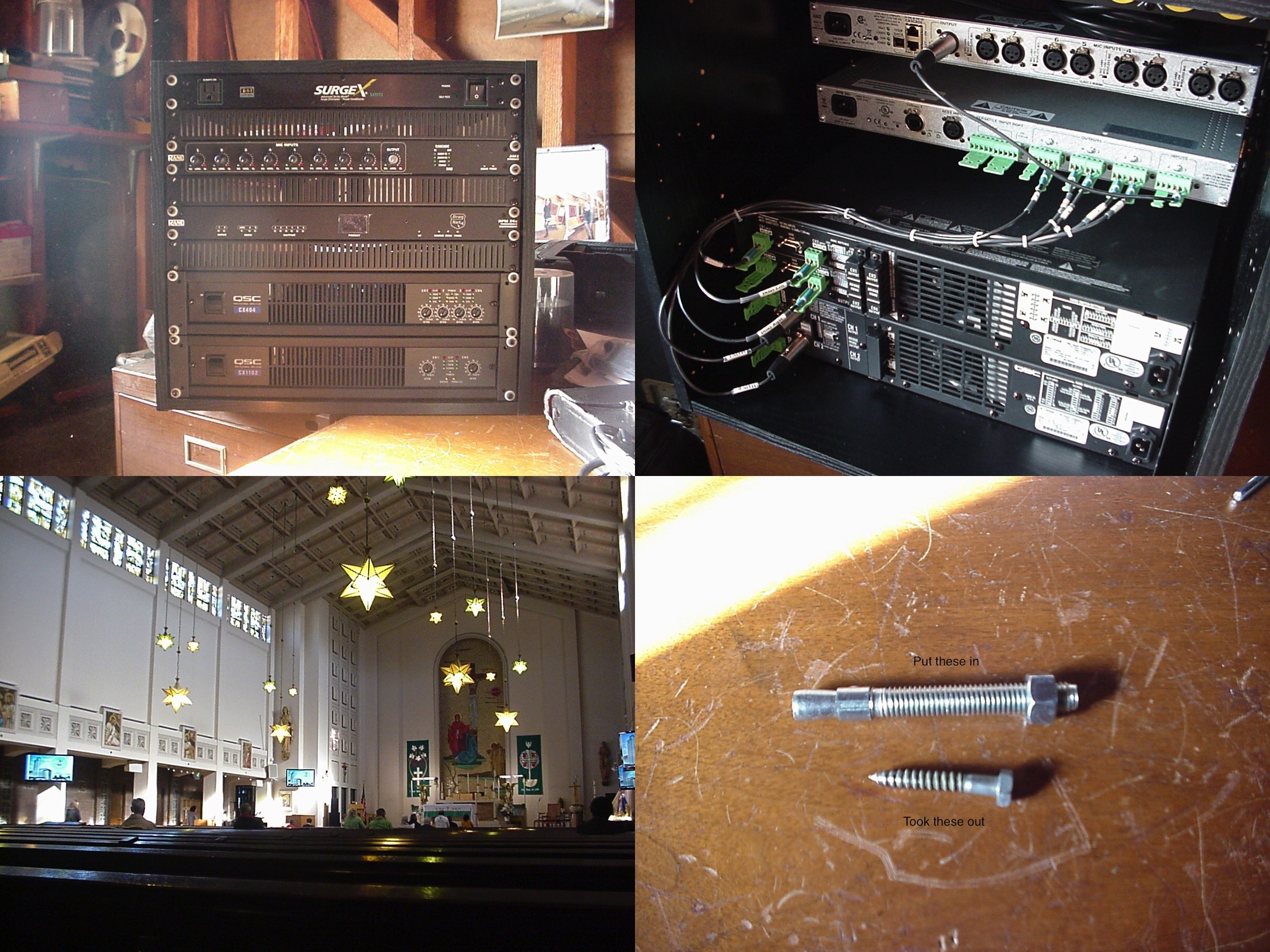 sequencing, QSC PL325 amps, Symetrix Solus processing, Rane AM2
