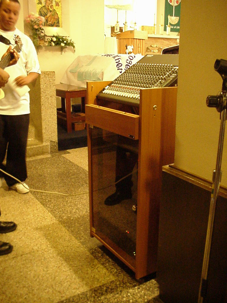 the choir with Sennheiser shotgun microphones, a Mackie 1604VLZPRO